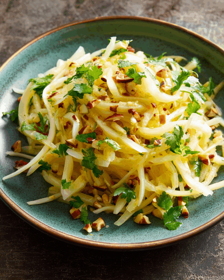 Der Kohlrabi-Apfel-Salat mit Joghurtdressing ist mehr als nur ein schneller Snack – er ist ein Symbol für moderne, leichte Küche. Mit seinem erfrischenden Geschmack, seiner Vielseitigkeit und den gesundheitlichen Vorteilen spricht er ein breites Publikum an – von Diätbewussten über Sportler bis hin zu Familien und Feinschmeckern.